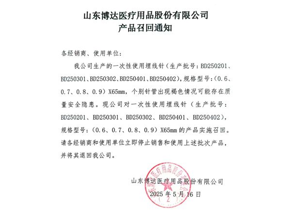 山東博達醫(yī)療用品股份有限公司是生產(chǎn)可吸收性外科縫線專業(yè)廠家,主要產(chǎn)品有可吸收縫合線 、內(nèi)窺鏡圈套線、穴位埋線、快吸收美容線、醫(yī)用羊腸線 膠原蛋白線以先進的生物技術提取了健康哺乳動物內(nèi)臟的膠原蛋白為基材,采用先進的工藝加工而成,線體的主要成分為高純度膠原蛋白,并獲得了國家發(fā)明專利,頒布了YZB/國6301-2013《可吸收性外科縫線》產(chǎn)品標準,并通過了ISO9001:2015和ISO13485:2016質量管理體系認證。